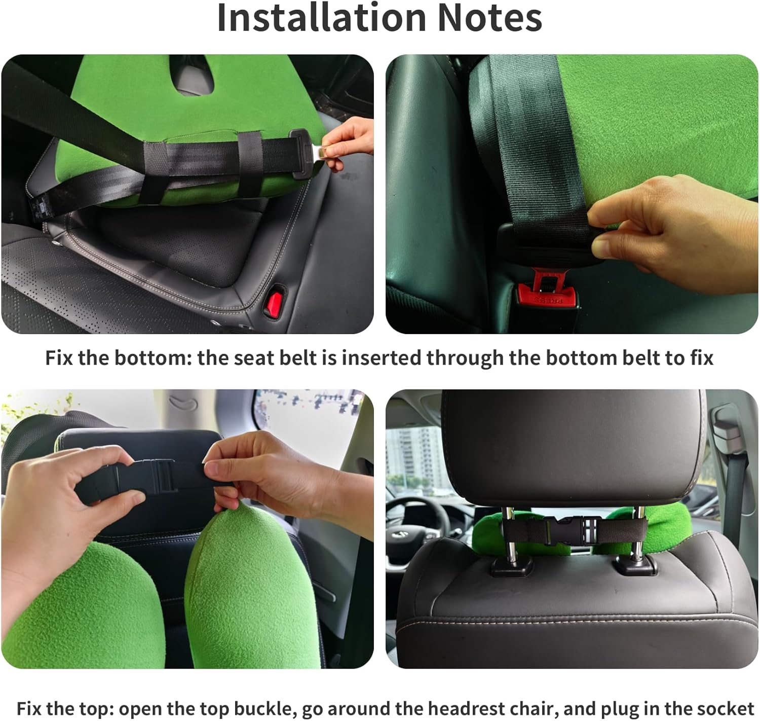 - Car pillow: FHSGGP travel pillow is a brand new car sleep pillow. The perfect combination of U-shaped design and safety belt solves the safety problem of children and the elderly during long distance travel. Use it when your child is in the car. It will support any direction, maintain the correct sitting posture, and make your driving easier