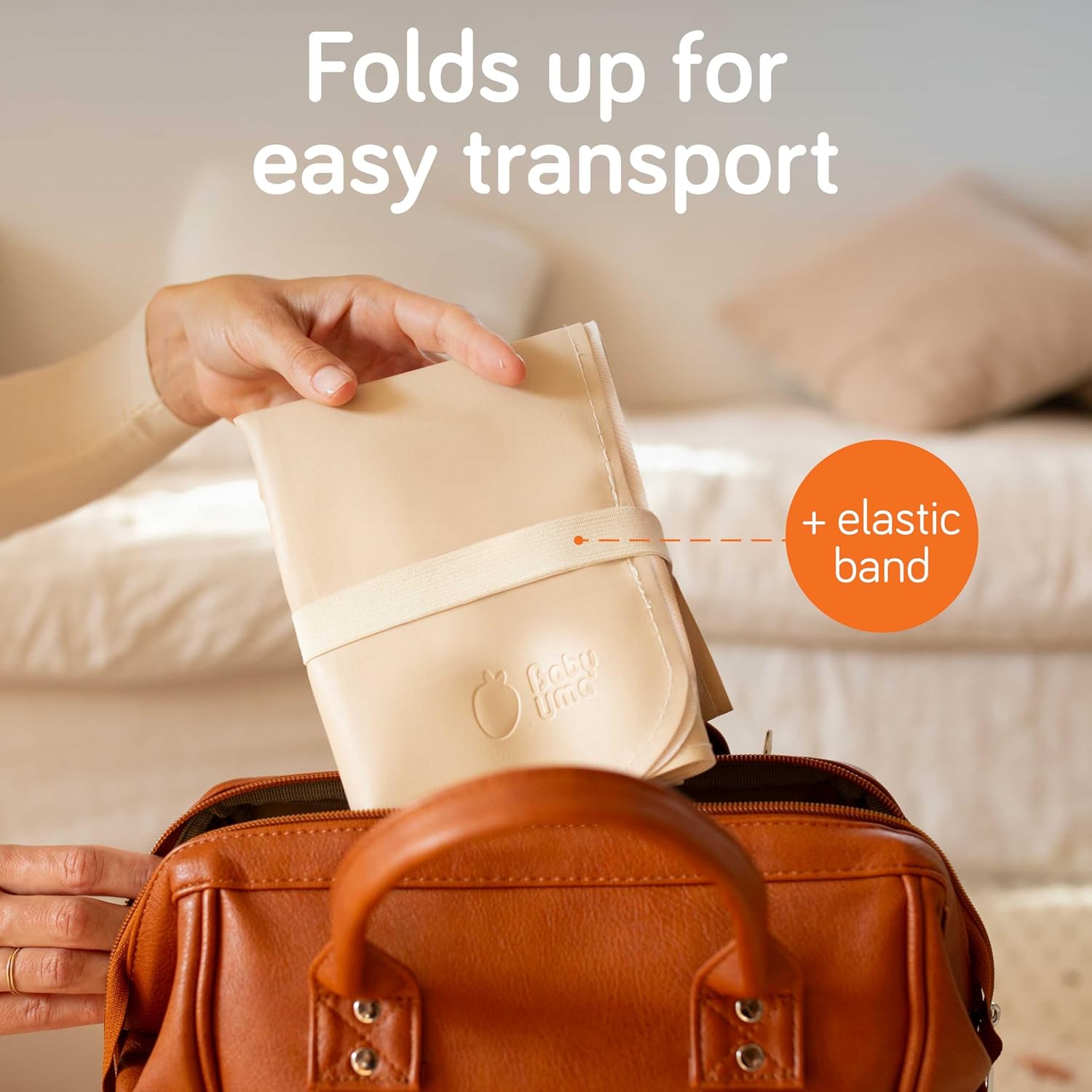 Baby Uma Vegan Leather Baby Changing Mat - Waterproof & Wipeable Changing Pad, XL for Growing Babies, Non-Toxic, Lead-Free & Phthalate-Free, Folds up for Easy Transport, 30″ x 16″ (Ivory)