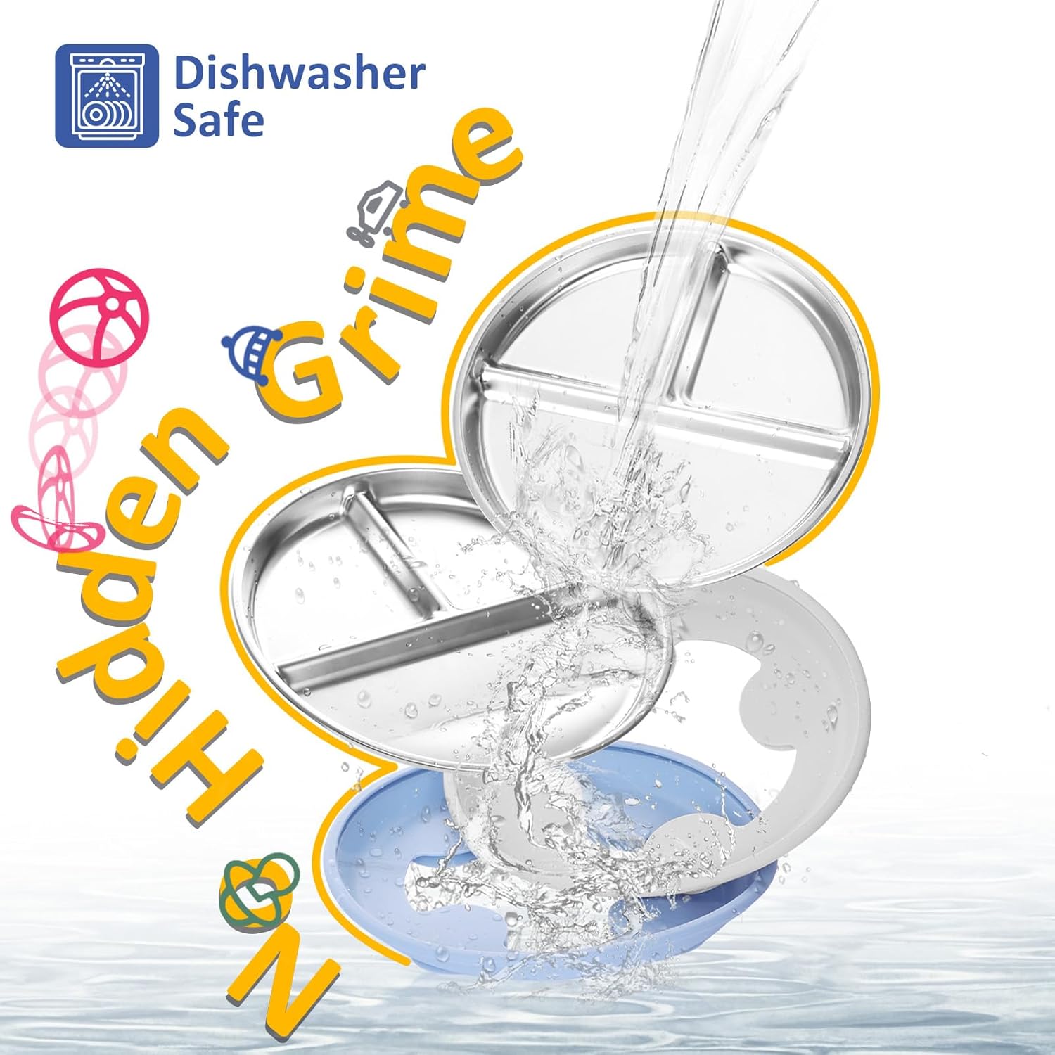 - Hassle-Free Cleaning: Resistant to food stains like carrots, the smooth stainless steel surface is easy to clean. Both the toddler plate and silicone suction sleeve are dishwasher-safe, making cleanup quick and stress-free for busy parents