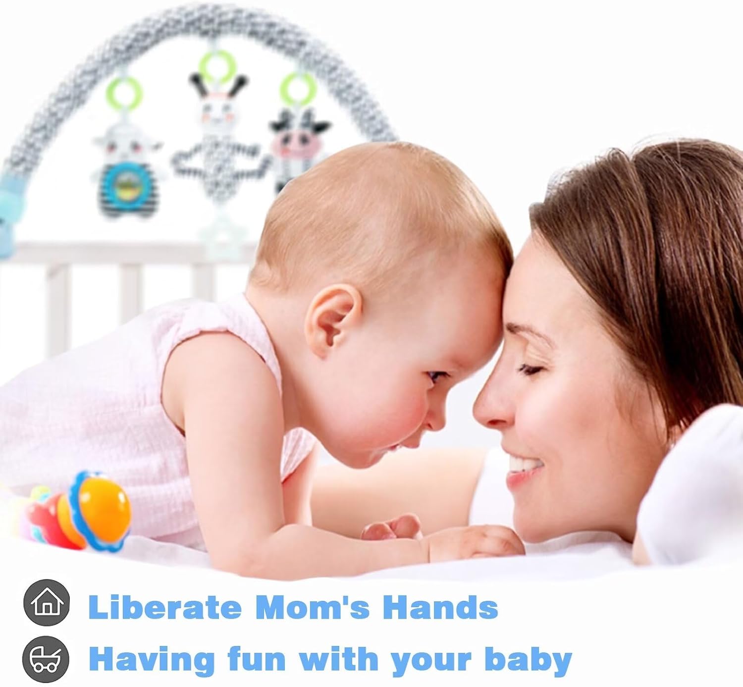 - Carseat toys for infants 3-6 months,Stroller toys have variety of graphics,ant with a bell.BB squeaker in the cattle,press to make a Bi~ Bi~ sound.Sheep has colorful rotating ball.