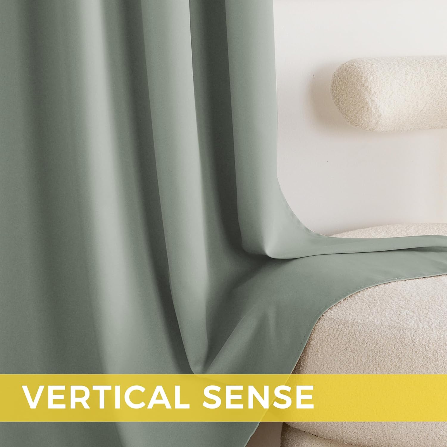 NICETOWN Sage Green Blackout Curtains 108 inch Long, Summer Room Daekening Thermal Insulated Grommet Privacy Energy Saving Shades for Bedroom, Living Room, Laundry, Closet, 2 Panels, W52