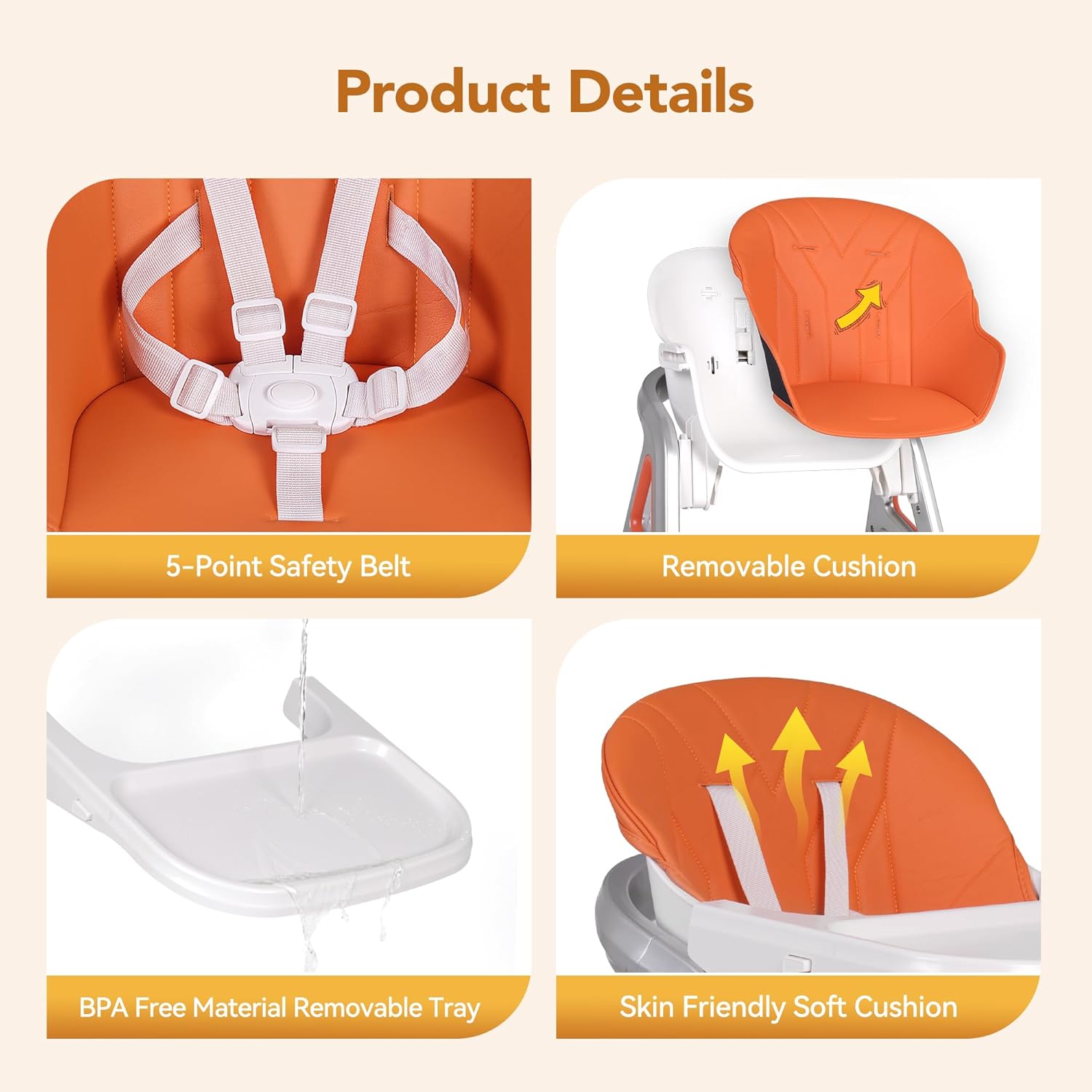 - 【6-in-1 Convertible Baby High Chair】More Than Just a High Chair! It converts between: a baby dining chair, table-side seat, floor seat, play table, art desk, and leisure chair.