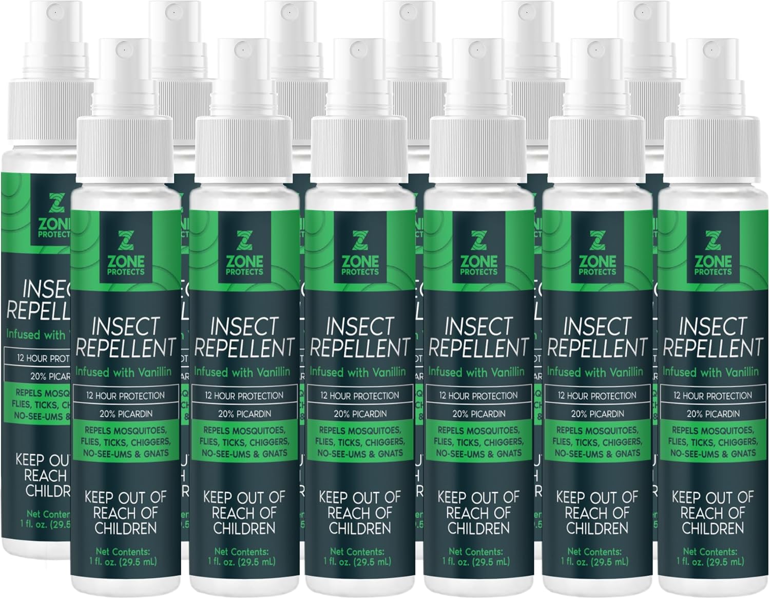 Scented Picaridin Insect Repellent; Twelve 1oz Mist Spray Bottles; 12-hr Proven Protection; Ticks, Mosquitoes, No-Seeums, Gnats and Chiggers