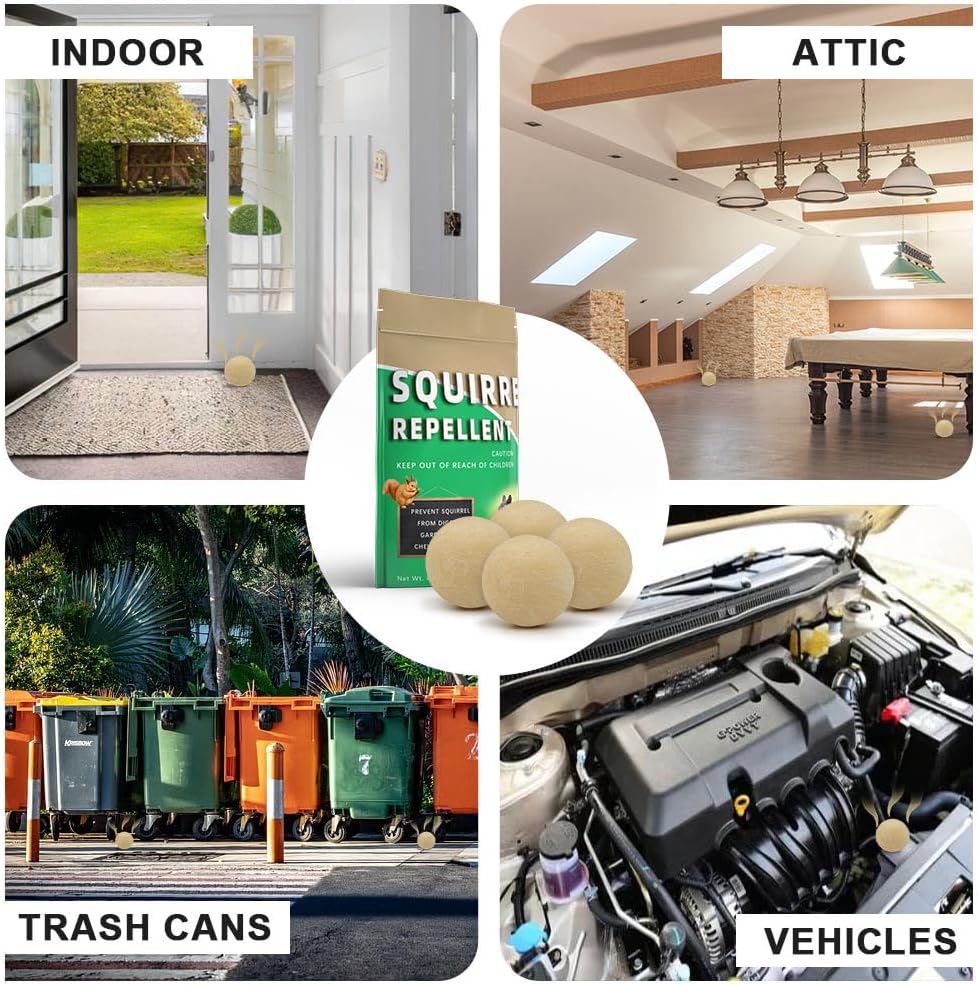 - Ready to Use: Simply place or hang the squirrel repellent in areas prone to squirrel activity.